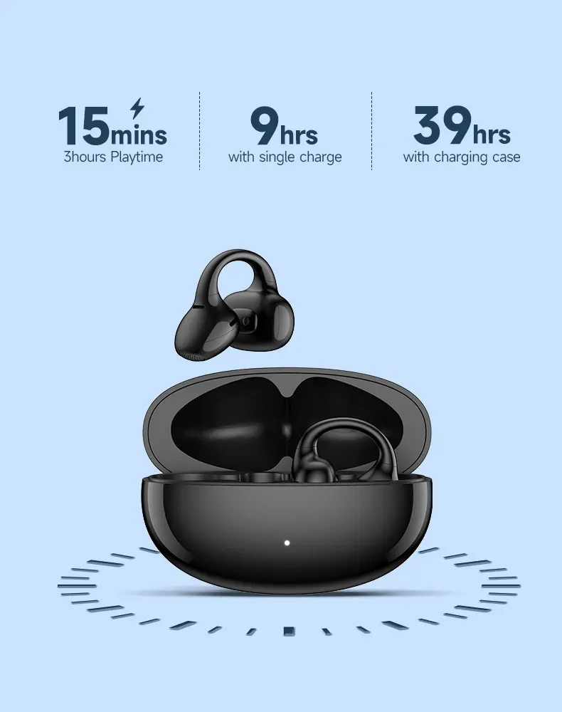 Enjoy up to 9 hours of playback on a single charge, with up to 39 hours total using the charging case. A quick 15-minute charge gives you 3 hours of listening time.